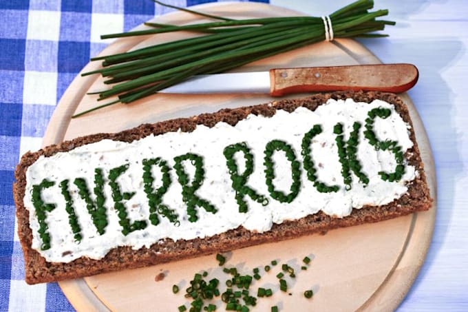 I will write your text or website name with chives on creamy bread and send the image to you.